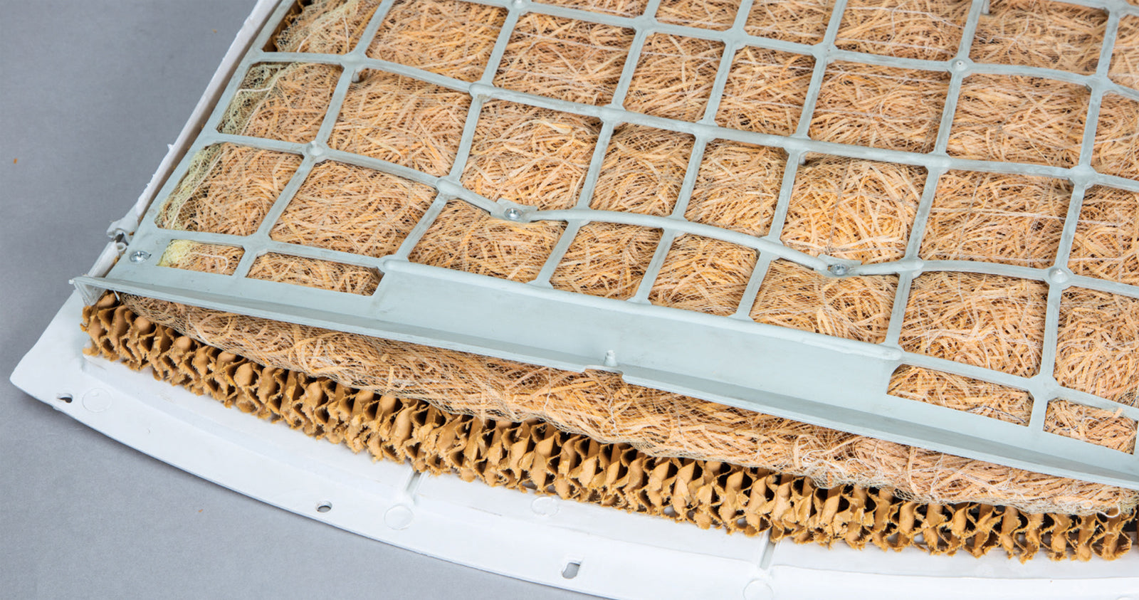 A combination of Honeycomb & Wood Wool Pads to reduce the temperature and blow cool air into the room.
