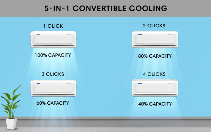 This senses the ambient temperature outside and the conditions inside the room. It then intelligently adjusts and optimises the cooling and the fan speed to ensure maximum comfort.