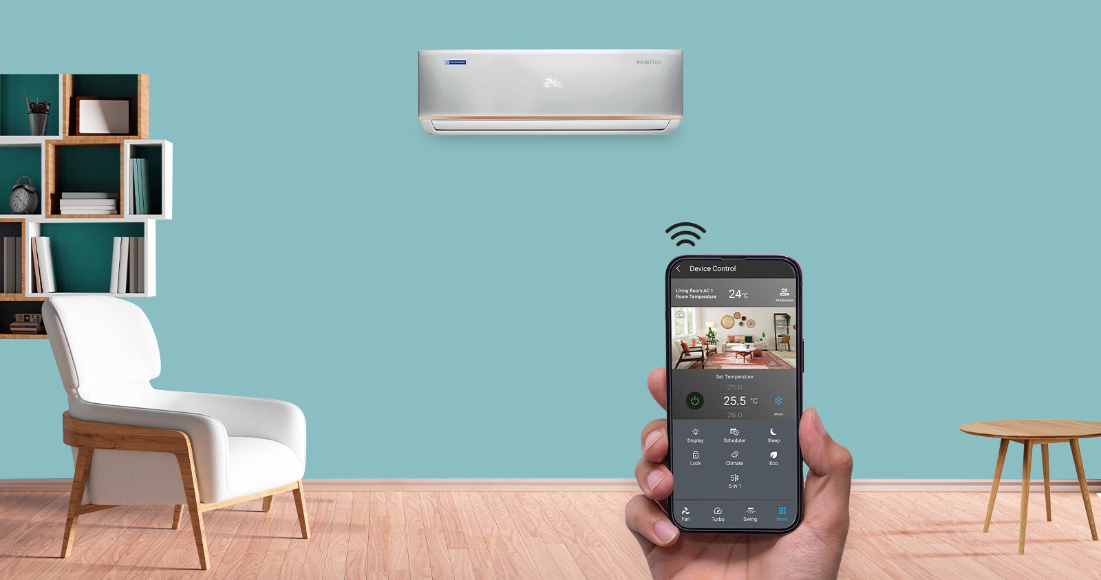 Blue Star's Wi-Fi enabled Smart App allows you to set the desired temperature and control your AC.