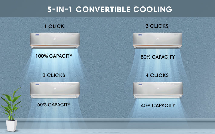 This senses the ambient temperature outside and the conditions inside the room. It then intelligently adjusts and optimises the cooling and the fan speed to ensure maximum comfort.