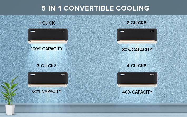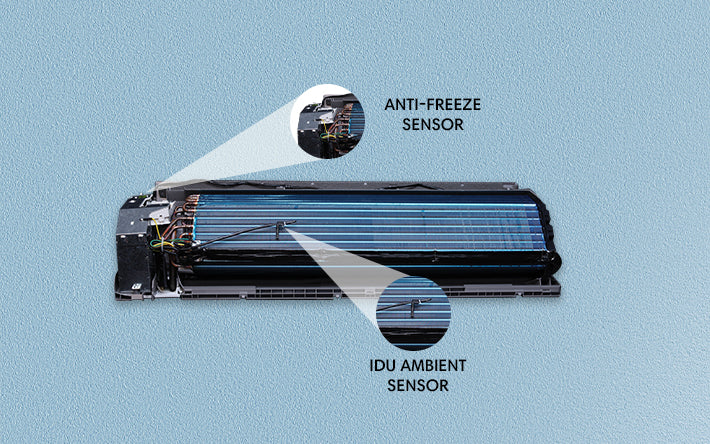 This senses the ambient temperature outside and the conditions inside the room. It then intelligently adjusts and optimises the cooling and the fan speed to ensure maximum comfort.