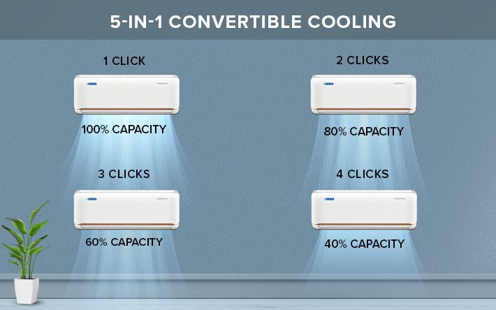 This senses the ambient temperature outside and the conditions inside the room. It then intelligently adjusts and optimises the cooling and the fan speed to ensure maximum comfort.