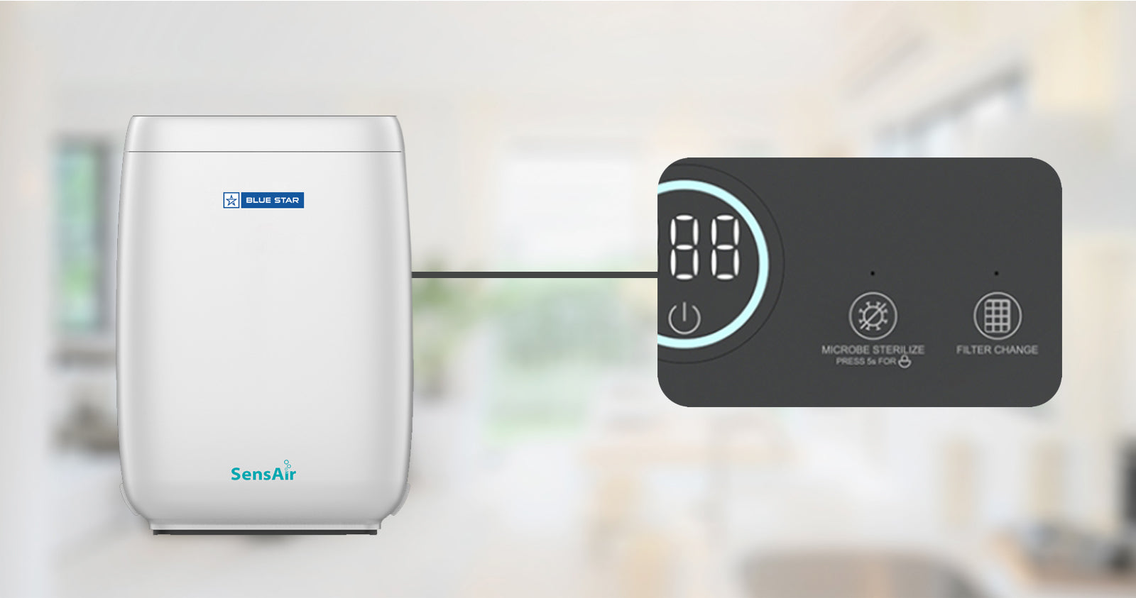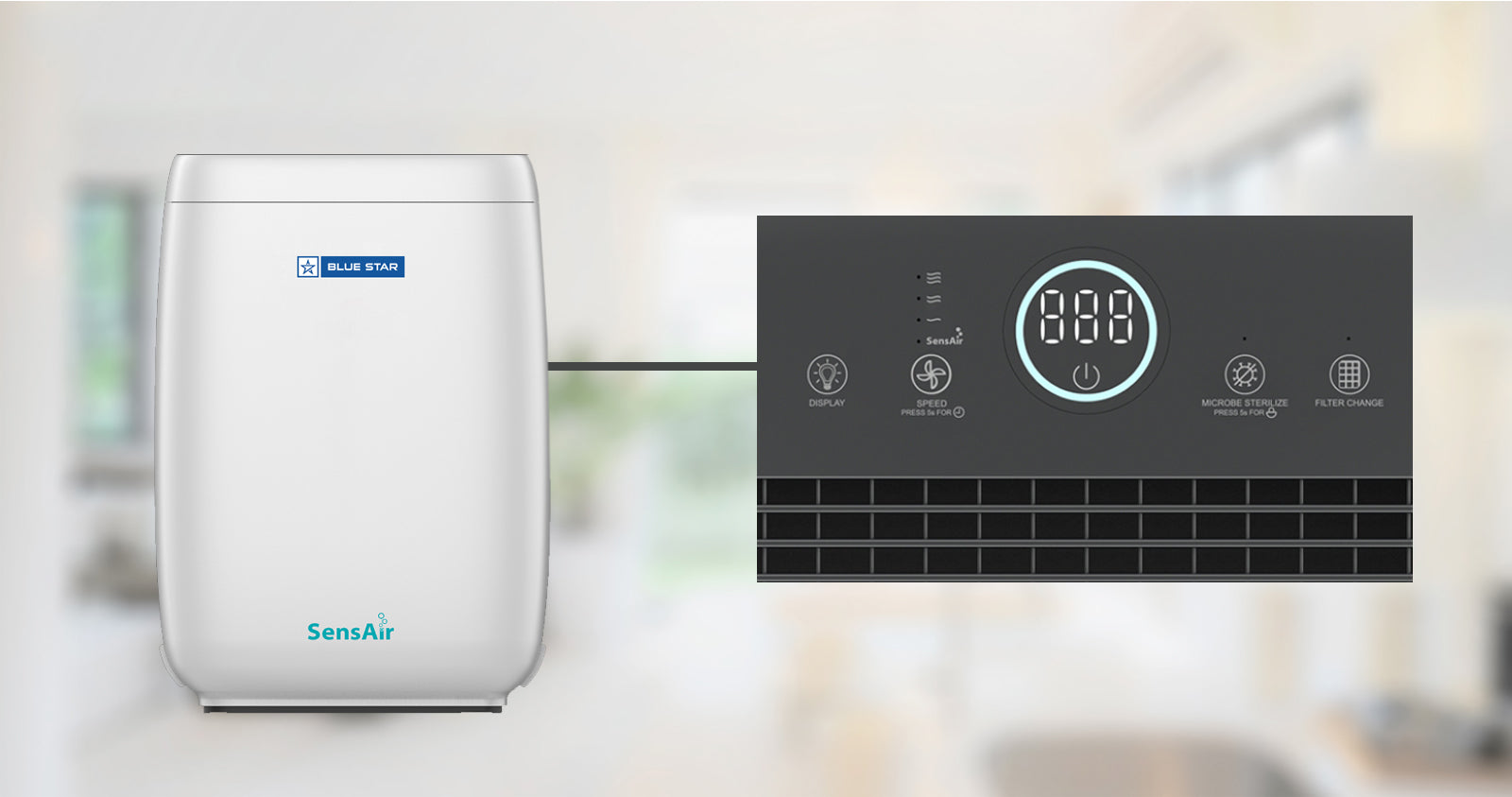 SensAir Technology uses the most advanced Auto sensor to intelligently detect, continuously monitor and indicate the presence of harmful pollutants inside the closed environment, in the fastest time. Depending on the quality and quantity of harmful pollutants, SensAir Technology varies the speed and performance to automatically purify the indoor air quality, releasing only pure and safe air inside the room.