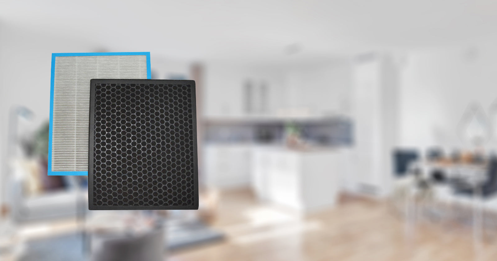 The Activated Carbon Filter uses carbon granules to filter chemical impurities like smoke, VOCs and Formaldehyde.