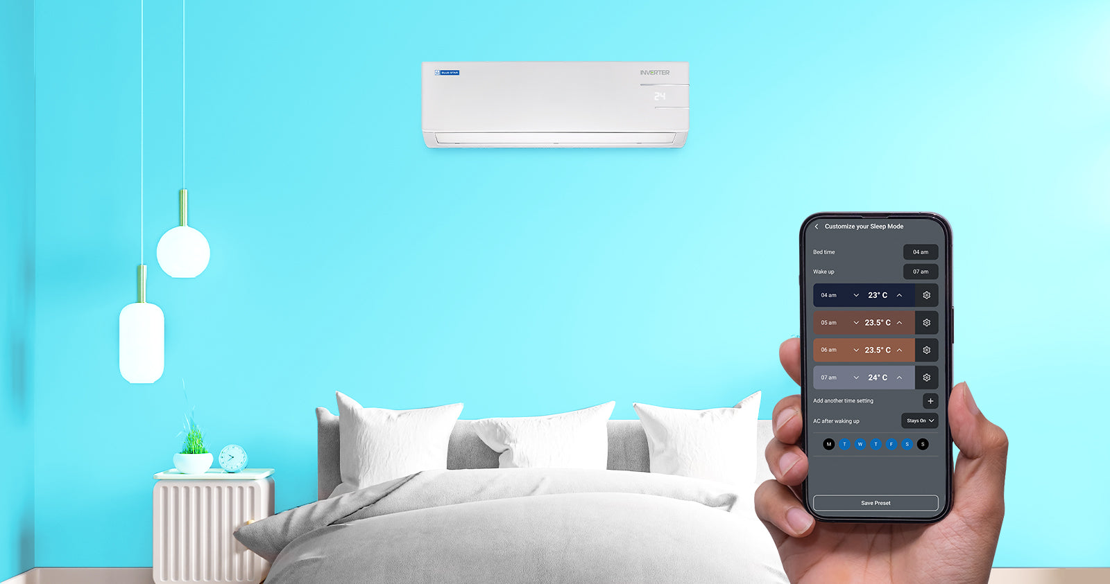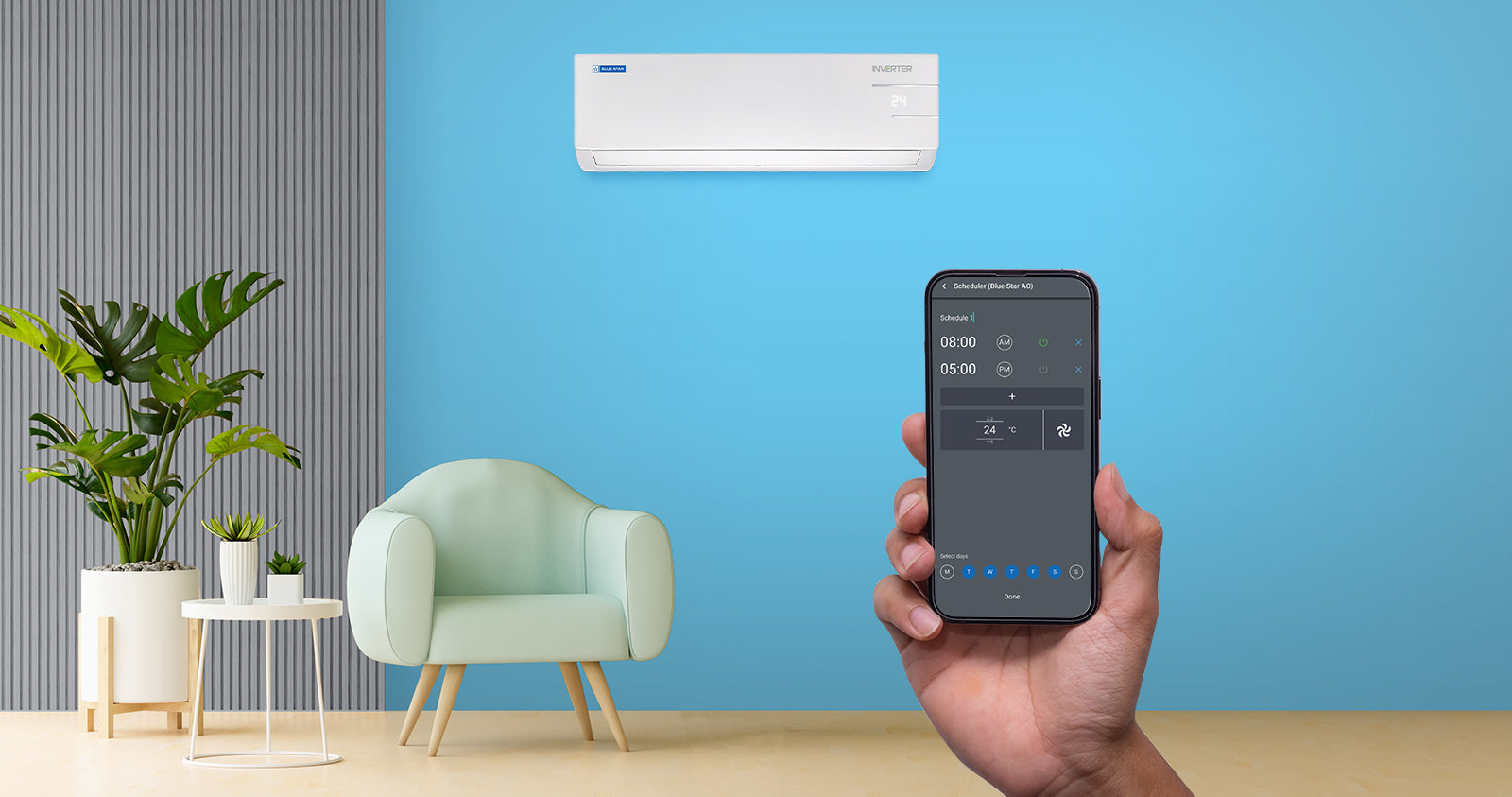 Blue Star's Wi-Fi enabled Smart App allows you to set the desired temperature and control your AC.