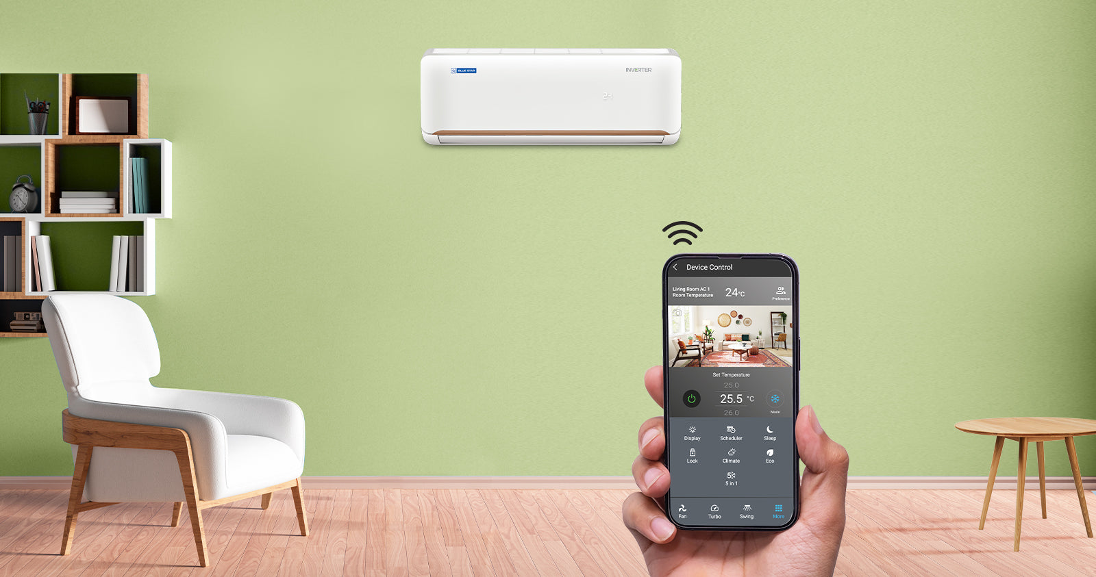 Blue Star's Wi-Fi enabled Smart App allows you to set the desired temperature and control your AC.